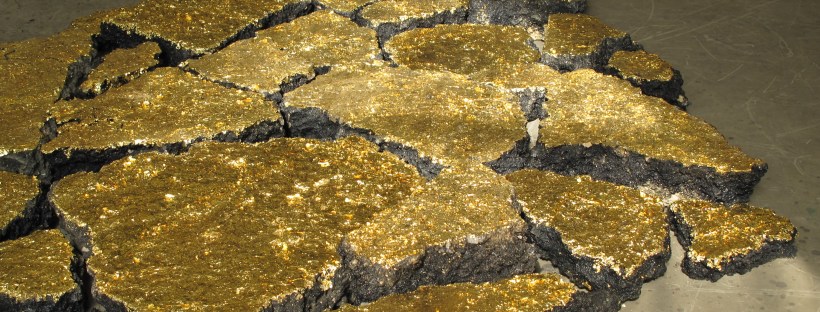 שכבת עלי מתכת מוזהבים יוצרת מתח בין הדק לעבה, בין העדין לגס, בין החומר הנמוך לגבוה. מה שהיה פסולת גסה מושלכת ומתפוררת הופך לנוצץ זוהר ומפתה.