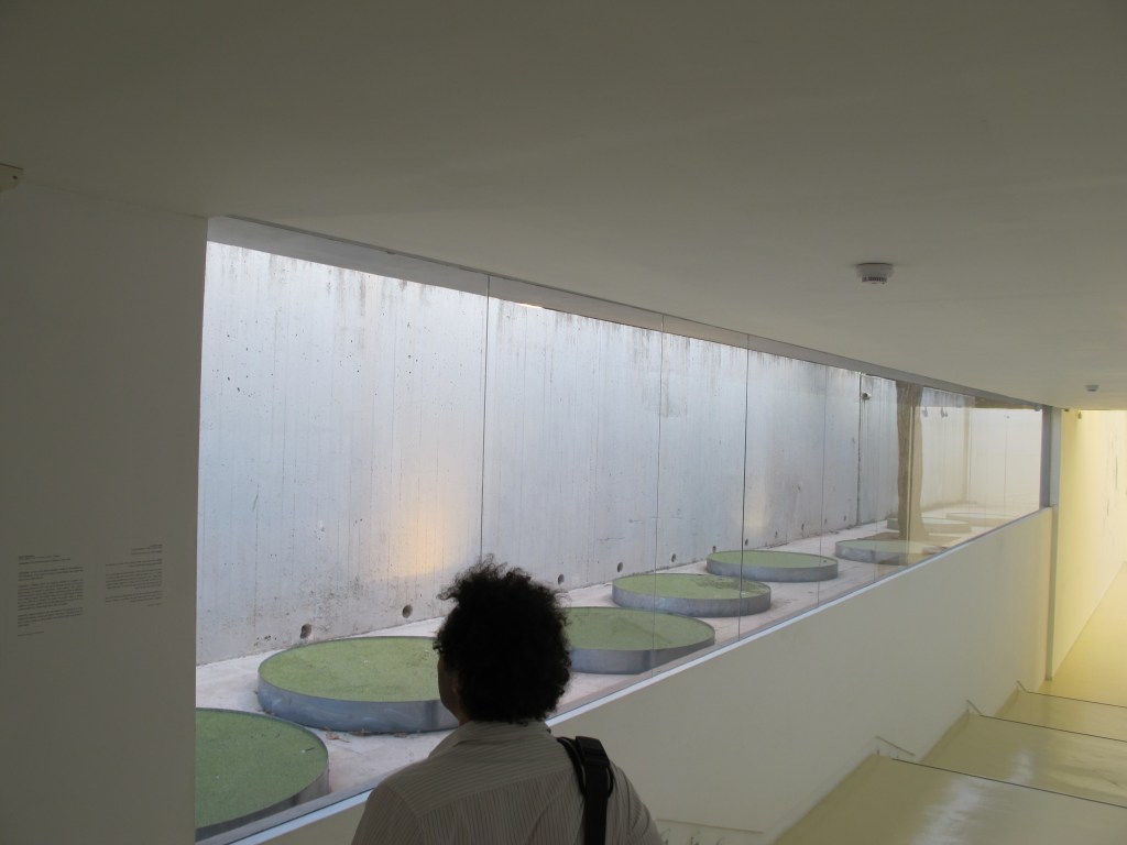 This location within the open court between the museum and the street means that it is concurrently part of the museum and outside its main building, allowing a close yet detached parted view of the ponds. It evokes the discussion on desire, the anamorphic view, and the dioramic mode that relate to the spectator's experience, its changing point of view, and its relation to movement and desire that motivate that view.