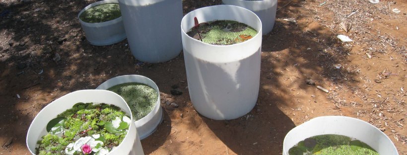 The installation Water Lilies Garden To Go #1 was realized in September 2010 as a part of the Shapira neighborhood art festival near the Tel Aviv central bus station. It lasted for only three days, in a neighborhood where temporary olive groves instantly appeared and where many of its residents are work immigrants and foreigners. The semi-opaque plastic water tanks contained Water Lilies (Nymphaeaceae), Mosquitofish (Gambusia affinis), and tiny frogs. Its lively unmediated character appealed to the neighborhood's children that enjoyed a hands-on experience of the work. It was positioned at an empty plot, similar to those with the temporary groves, thus echoing the same practice. The work reflected on political-ideological conflicts in Israeli society concerning the status of refugees, asylum seekers, and work immigrants. It resonated with similar dialectics as the instant olive groves, implying the convergence of power and mobility of people and plants.
